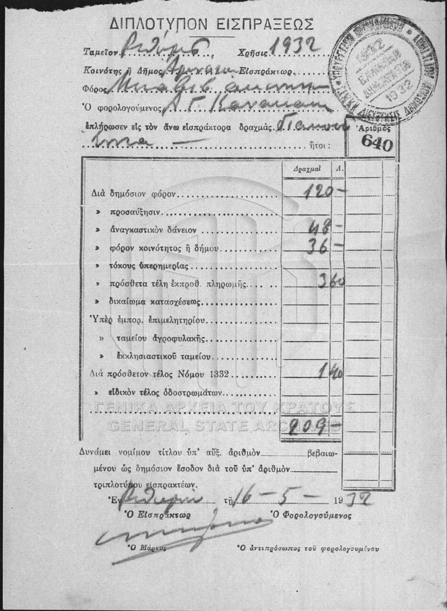 [Item] GRGSA-RET_NOT014.01.F000042.IT021437b Item #21437b [16 Μαΐου 1932] Notarial deed. Sale agreement. |