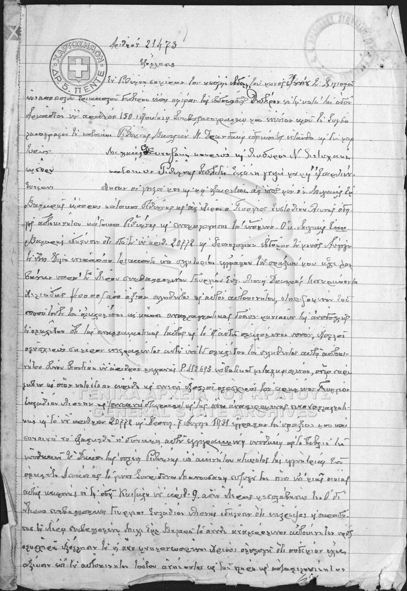 [Τεκμήριο] GRGSA-RET_NOT014.01.F000042.IT021473 Τεκμήριο #21473 [27 Ιουνίου 1932] Συμβολαιογραφική πράξη. Εξόφληση. |
