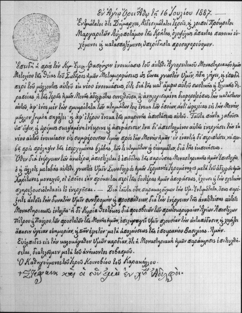 [Fonds] GRGSA-RET_NOT028 ΑΡΧΕΙΟ ΣΥΜΒΟΛΑΙΟΓΡΑΦΟΥ ΜΥΛΟΠΟΤΑΜΟΥ ΙΩΑΝΝΗ Δ. ΝΙΚΟΛΑΚΑΚΗ [1811 - 1986] Contents: |