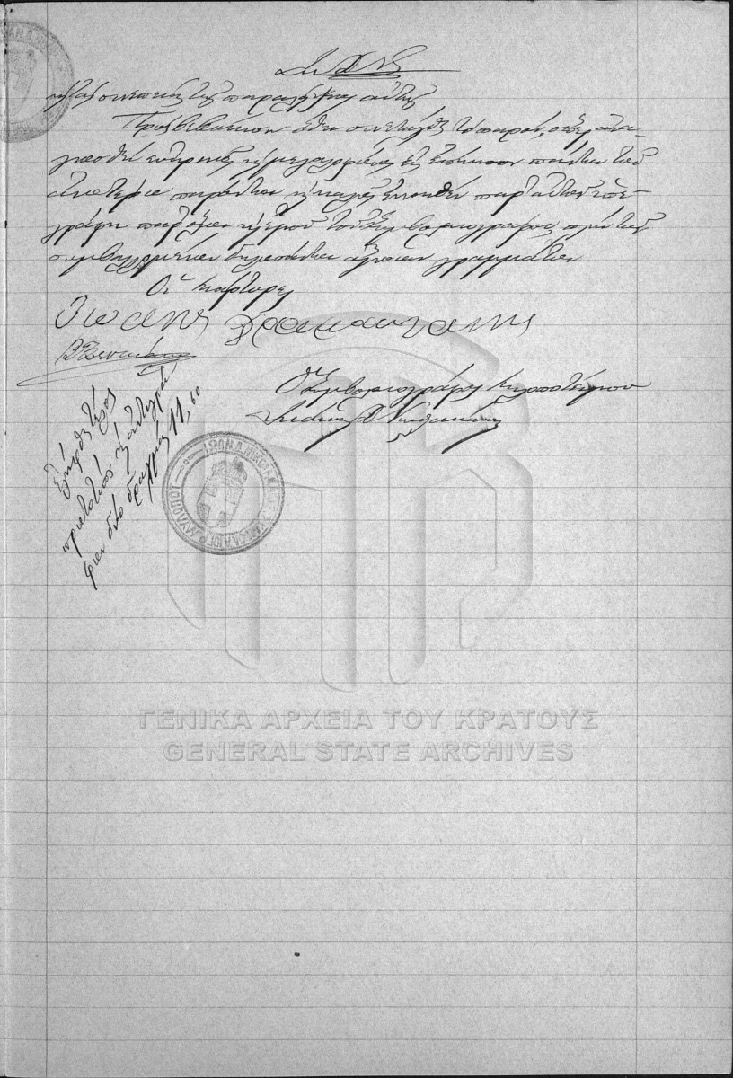 [Item] GRGSA-RET_NOT028.01.F000020.IT002442 Item #2442 - AΡΧΕΙΟ ΣΥMBOΛΑΙΟΓΡΑΦΟΥ ΜΥΛΟΠΟΤΑΜΟΥ ΙΩΑΝΝΗ Δ. ΝΙΚΟΛΑΚΑΚΗ [5 Οκτωβρίου 1903] Notarial deed. Sale agreement. |