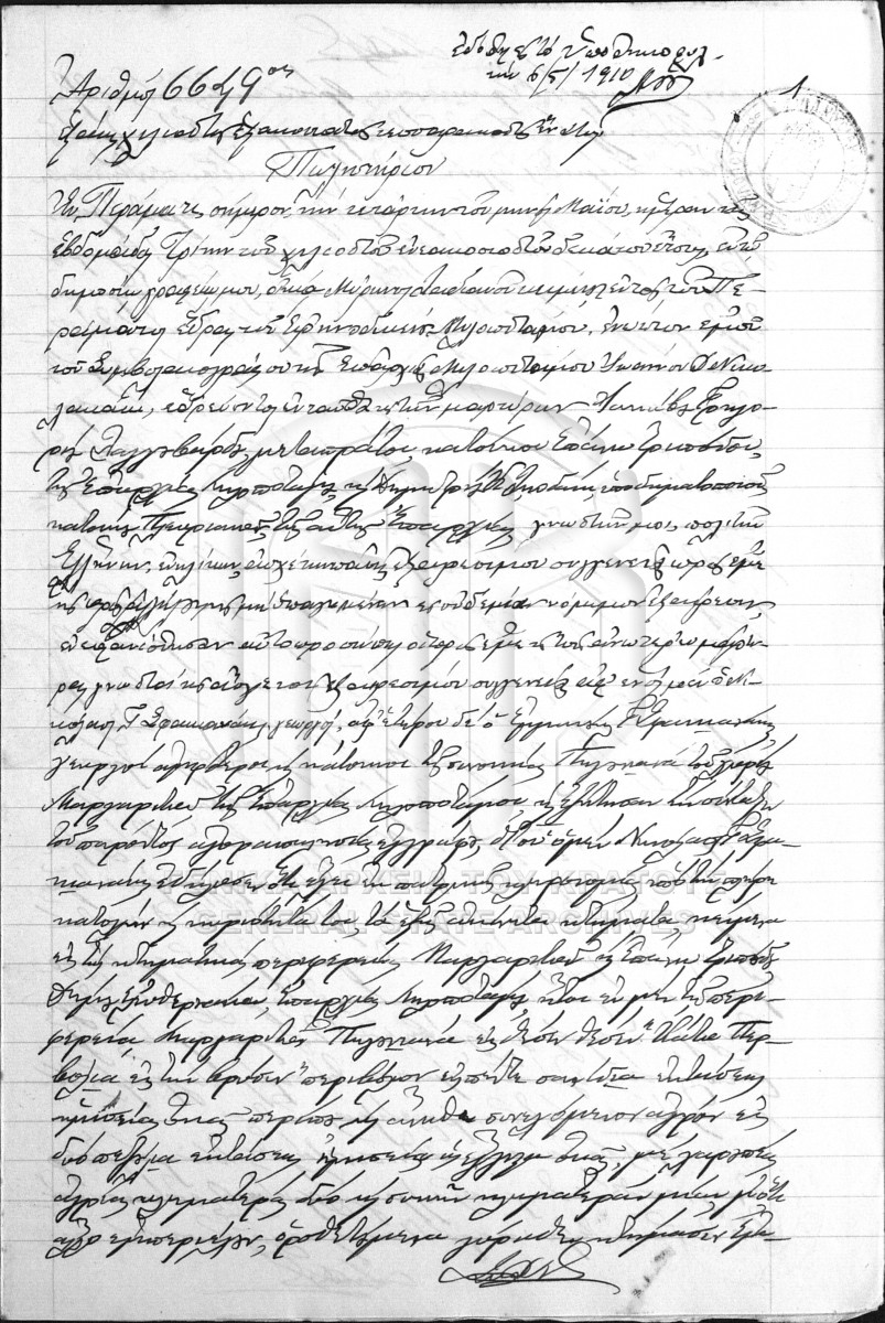 [Τεκμήριο] GRGSA-RET_NOT028.01.F000032.IT006649 Τεκμήριο #6649 [4 Μαΐου 1910] Συμβολαιογραφική πράξη. Πωλητήριο. |