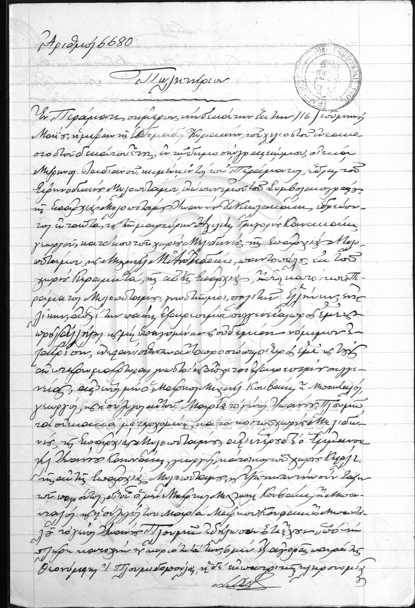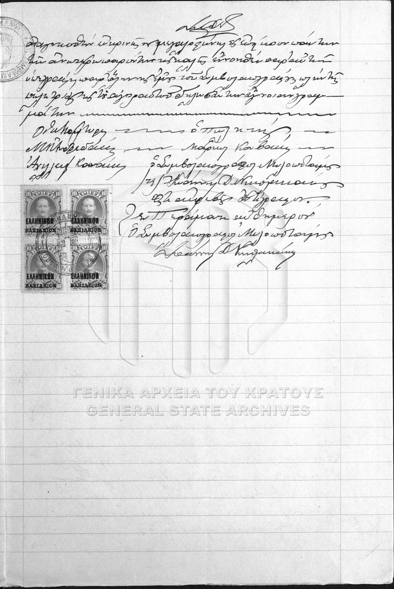 [Τεκμήριο] GRGSA-RET_NOT028.01.F000032.IT006680 Τεκμήριο #6680 - AΡΧΕΙΟ ΣΥMBOΛΑΙΟΓΡΑΦΟΥ ΜΥΛΟΠΟΤΑΜΟΥ ΙΩΑΝΝΗ Δ. ΝΙΚΟΛΑΚΑΚΗ [16 Μαΐου 1910] Συμβολαιογραφική πράξη. Πωλητήριο. |