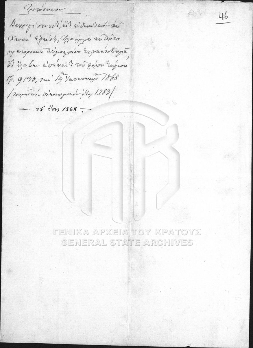 [Item] GRGSA-SAM_COL013.01.F000001.SF0002.IT000046 Item #046 - COLLECTIONS. FOLDER D4. DIRECTORY OF OTTOMAN DOCUMENTS (1790-1889) [19 Ιανουαρίου 1868] Receipt for amounts in lieu of royal tax paid to ottoman captains, officers, soldiers. |