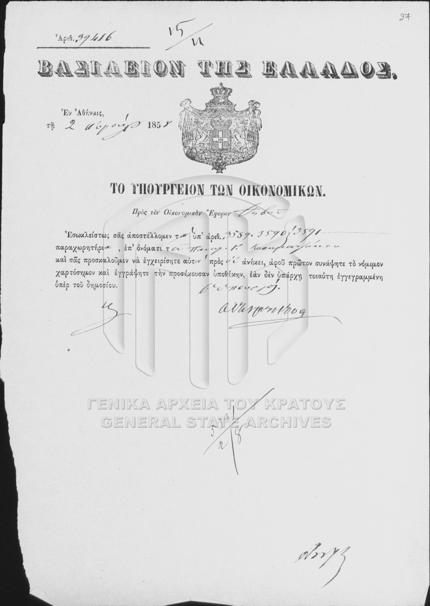 SECRETARIAT/MINISTRY OF FINANCE ARCHIVE: NATIONAL LANDS (1833-1869) - SECRETARIAT/MINISTRY OF FINANCE ARCHIVE: NATIONAL LANDS (1833-1869)  [1833 - 1869]