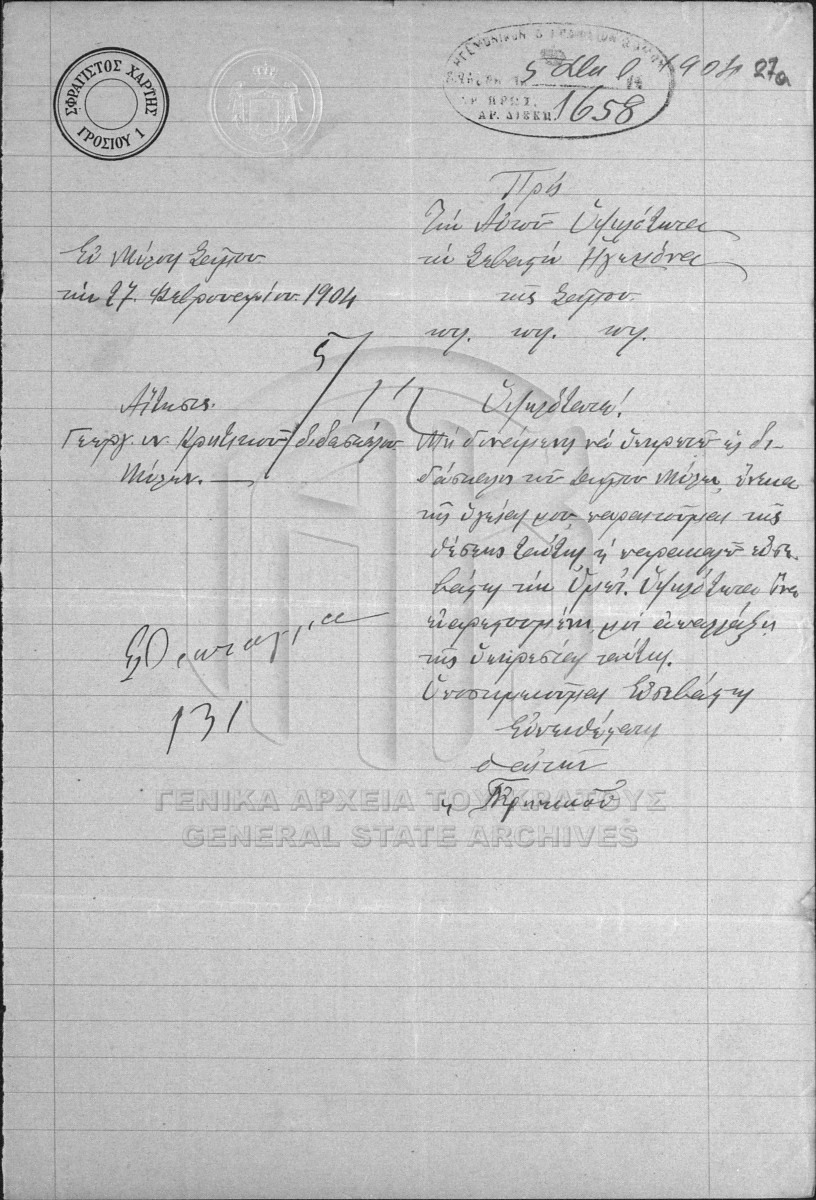 [Τεκμήριο] GRGSA-SAM_PRS003.01.F000051.SF1904.IT000027 Τεκμήριο #027 [1904] Αιτήσεις αδειών απουσίας, καταγγελίες κατά εκπαιδευτικών για συμμετοχή τους στα κομματικά και άλλες παραβατικές συμπεριφορές, διορισμοί, ... |