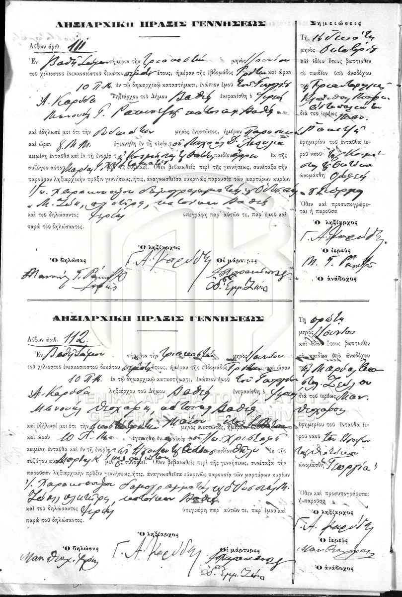 Ληξιαρχικό βιβλίο του Δήμου Βαθέoς.