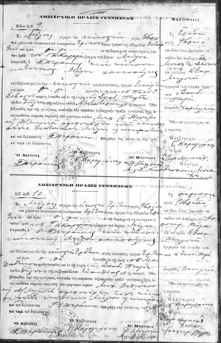 [Fonds] GRGSA-SAM_REG022 OFFICIAL REGISTERS - OFFICIAL REGISTERS [1874 - 1932] Contents: Ληξιαρχικό βιβλίο του Δήμου Μύλων. Ληξιαρχικά βιβλία του Δήμου Μύλων. Ληξιαρχικά βιβλία του Δήμου Μύλων (βιβλίο δεύτερο}... |