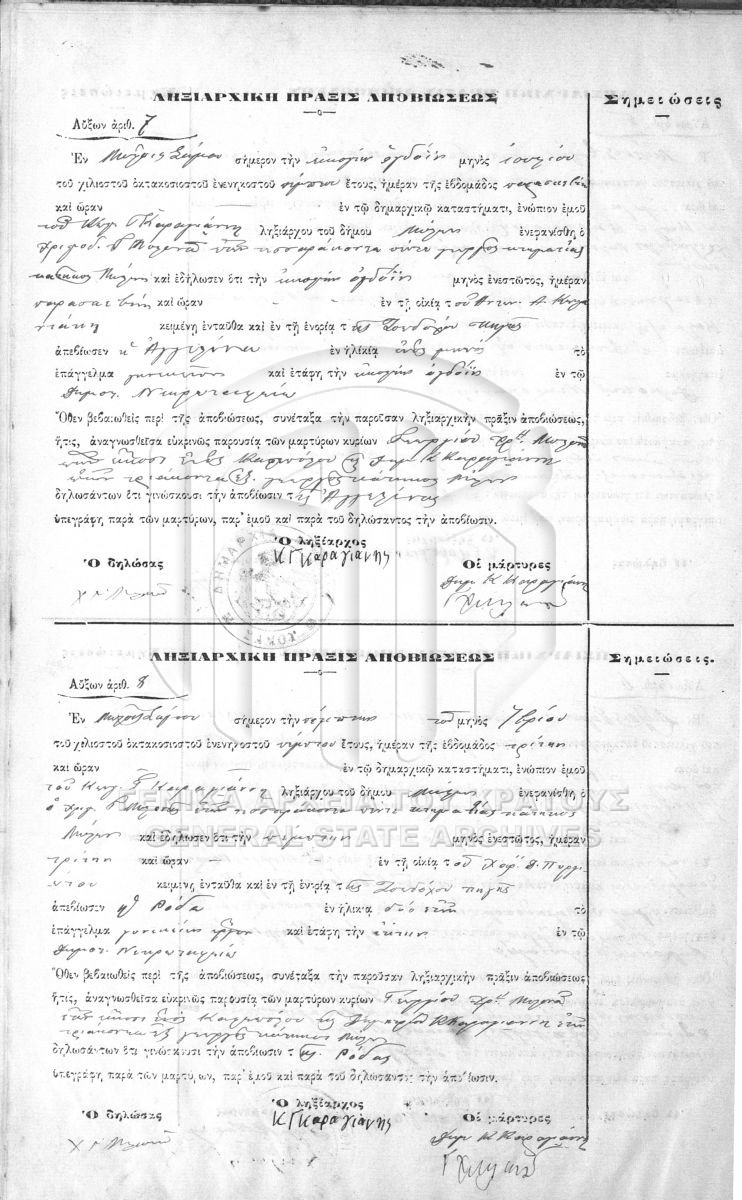 Contents: Ληξιαρχικό βιβλίο του Δήμου Μύλων. Ληξιαρχικά βιβλία του Δήμου Μύλων. Ληξιαρχικά βιβλία του Δήμου Μύλων (βιβλίο δεύτερο}...
