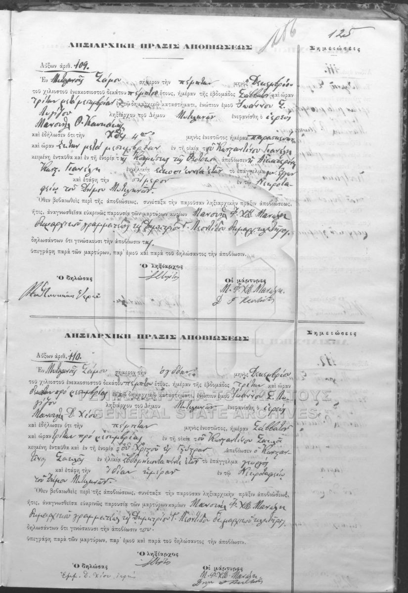 Contents: Ληξιαρχικά βιβλία του Δήμου Βαθέος. Ληξιαρχικό βιβλίο του Δήμου Μυτιληνών. Ληξιαρχικά βιβλία του Δήμου Μυτιληνών. Ληξιαρ...