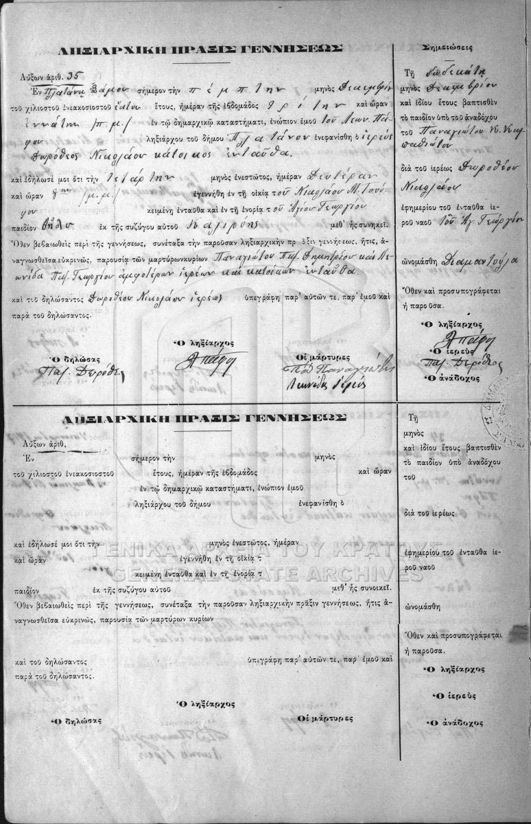 [Fonds] GRGSA-SAM_REG030 ΛΗΞΙΑΡΧΙΚΑ [1855 - 1932] Contenu: Ληξιαρχικό βιβλίο του Δήμου Πλατάνου. Ληξιαρχικά βιβλία του Δήμου Πλατάνου. Βιβλίο ληξιαρχικών πράξεων του δήμου Πλατάνο... |