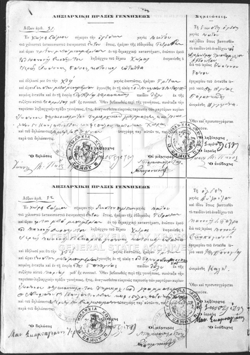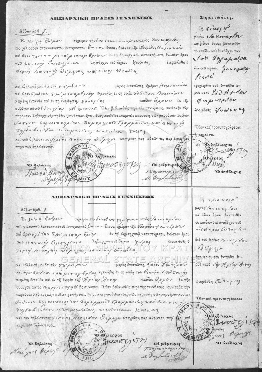 [Fonds] GRGSA-SAM_REG037 OFFICIAL REGISTERS - OFFICIAL REGISTERS [1855 - 1932] Contents: Ληξιαρχικό βιβλίο του Δήμου Χώρας. Ληξιαρχικά βιβλία του Δήμου Χώρας. Ληξιαρχικό βιβλίο του Δήμου Χώρας Ληξιαρχικό βιβλί... |