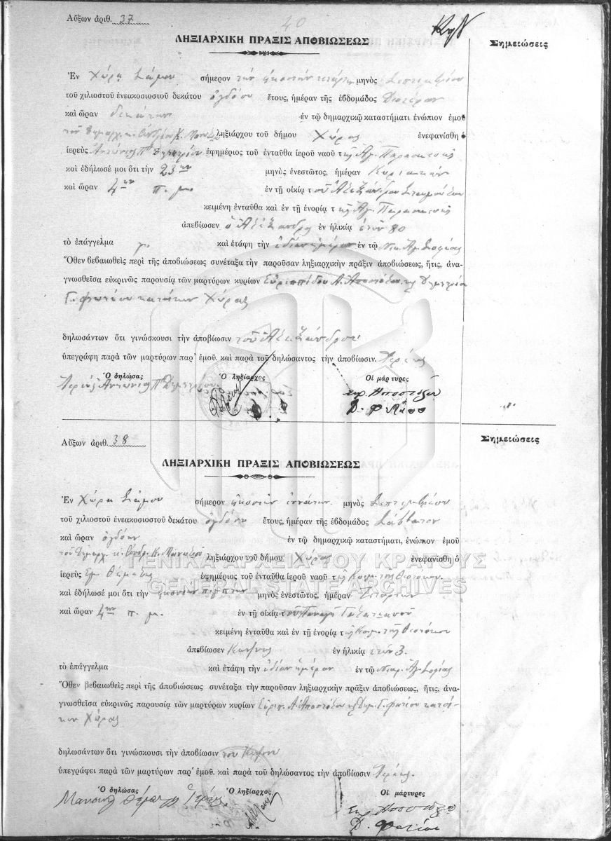 [Αρχείο] GRGSA-SAM_REG037 ΛΗΞΙΑΡΧΙΚΑ [1855 - 1932] Περιεχόμενα: Ληξιαρχικό βιβλίο του Δήμου Χώρας. Ληξιαρχικά βιβλία του Δήμου Χώρας. Ληξιαρχικό βιβλίο του Δήμου Χώρας Ληξιαρχικό βιβλί... |
