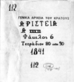 [Fonds] GRGSA-CSA_PAO007.00 Αριστεία [1834 - 1865] Το αρχείο αποτελείται από 307 φακέλους ποικίλου όγκου, οι οποίοι φέρουν ταξινομική αρίθμηση κατά χρονολογική σειρά, από 1-307. Αθροιστικά... |