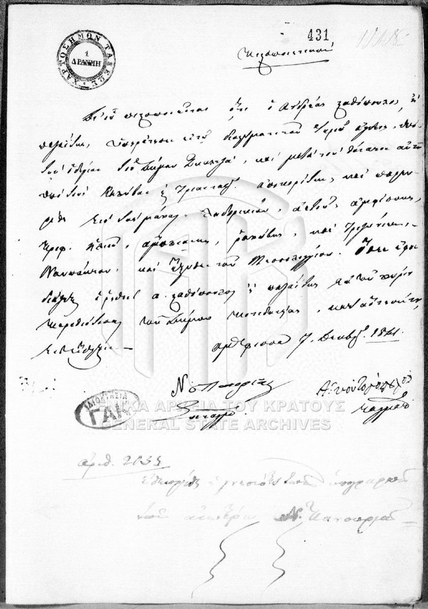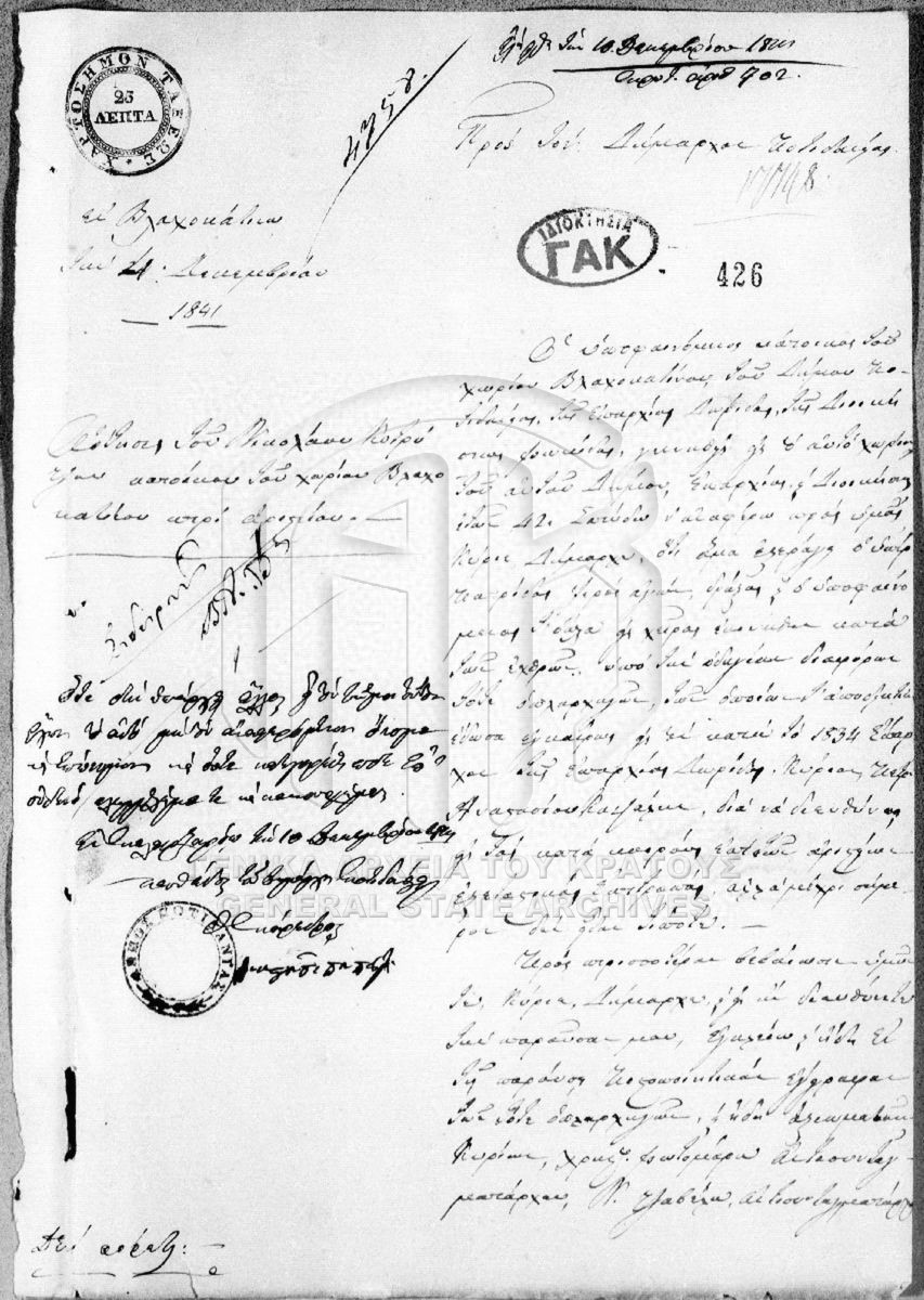 [Fonds] GRGSA-CSA_PAO007.00 Αριστεία [1834 - 1865] Το αρχείο αποτελείται από 307 φακέλους ποικίλου όγκου, οι οποίοι φέρουν ταξινομική αρίθμηση κατά χρονολογική σειρά, από 1-307. Αθροιστικά... |