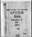 [File] GRGSA-CSA_PAO007.00.01.F000142 File #142 - Αιτήσεις αγωνιστών [1841 – 1842] Κατάλογοι εγγράφων, αριστεία, πιστοποιητικά, αποδεικτικά, ενδεικτικά, αναφορές, δηλώσεις, αιτήσεις, φύλλα μητρώου, επιστολές, υπηρεσιακή ... |