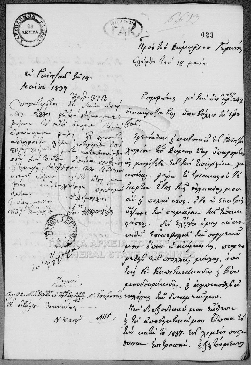 [Fonds] GRGSA-CSA_PAO007.00 Archive of Honorary Awards - Archive of Honorary Awards [1834 - 1865] Το αρχείο αποτελείται από 307 φακέλους ποικίλου όγκου, οι οποίοι φέρουν ταξινομική αρίθμηση κατά χρονολογική σειρά, από 1-307. Αθροιστικά... |