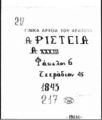 [File] GRGSA-CSA_PAO007.00.01.F000217 File #217 - Αιτήσεις αγωνιστών [1843 – 1844] Κατάλογοι εγγράφων, αριστεία, πιστοποιητικά, αποδεικτικά, ενδεικτικά, αναφορές, δηλώσεις, αιτήσεις, φύλλα μητρώου, επιστολές, υπηρεσιακή ... |