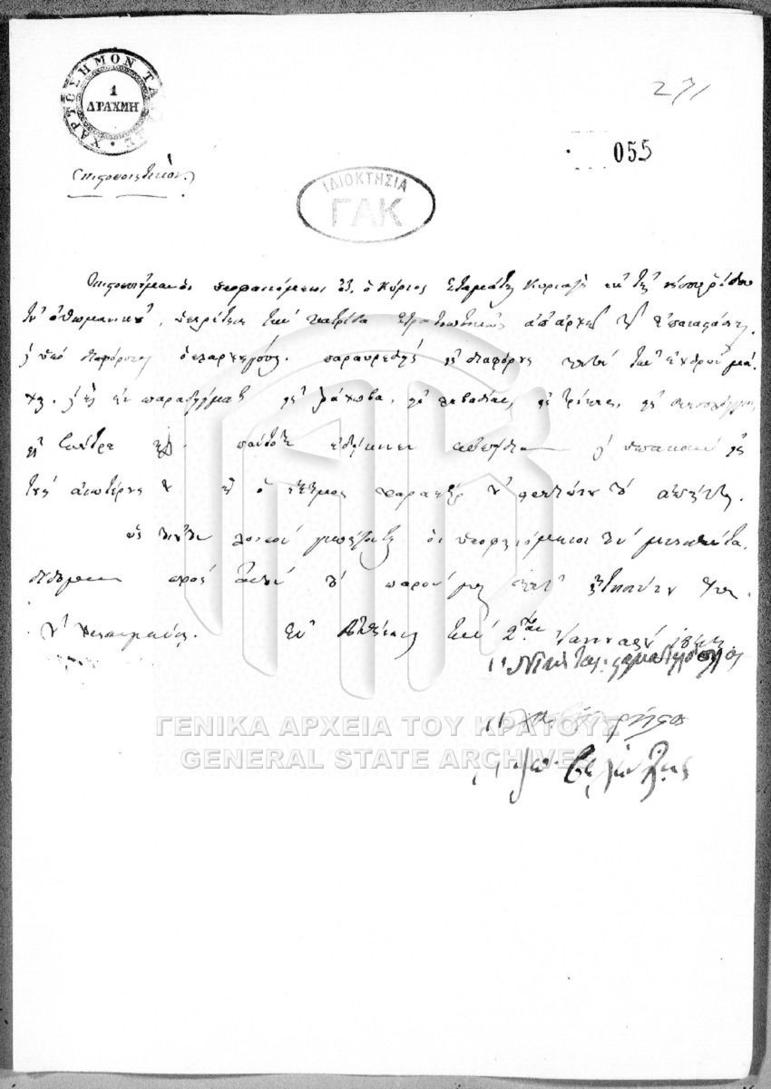 [Fonds] GRGSA-CSA_PAO007.00 Archive of Honorary Awards - Archive of Honorary Awards [1834 - 1865] Το αρχείο αποτελείται από 307 φακέλους ποικίλου όγκου, οι οποίοι φέρουν ταξινομική αρίθμηση κατά χρονολογική σειρά, από 1-307. Αθροιστικά... |