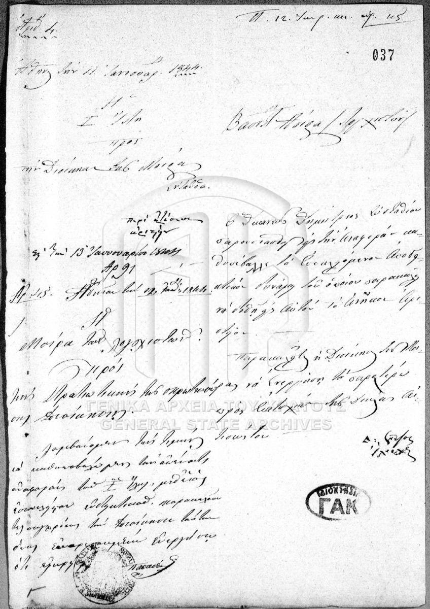 [Αρχείο] GRGSA-CSA_PAO007.00 Αριστεία [1834 - 1865] Το αρχείο αποτελείται από 307 φακέλους ποικίλου όγκου, οι οποίοι φέρουν ταξινομική αρίθμηση κατά χρονολογική σειρά, από 1-307. Αθροιστικά... |