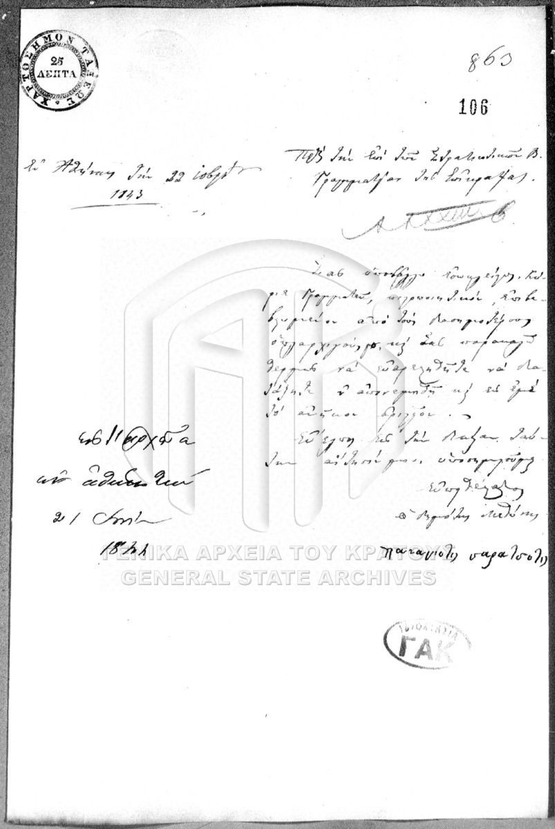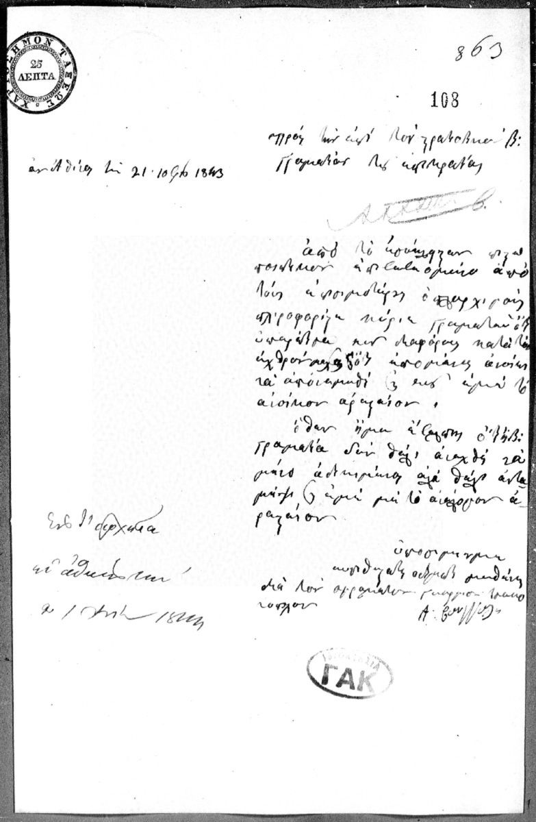 [Αρχείο] GRGSA-CSA_PAO007.00 Αριστεία [1834 - 1865] Το αρχείο αποτελείται από 307 φακέλους ποικίλου όγκου, οι οποίοι φέρουν ταξινομική αρίθμηση κατά χρονολογική σειρά, από 1-307. Αθροιστικά... |