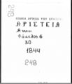 [Fonds] GRGSA-CSA_PAO007.00 Αριστεία [1834 - 1865] Το αρχείο αποτελείται από 307 φακέλους ποικίλου όγκου, οι οποίοι φέρουν ταξινομική αρίθμηση κατά χρονολογική σειρά, από 1-307. Αθροιστικά... |