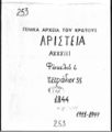 [File] GRGSA-CSA_PAO007.00.01.F000253 File #253 - Αιτήσεις αγωνιστών [1844 – 1845] Κατάλογοι εγγράφων, αριστεία, πιστοποιητικά, αποδεικτικά, ενδεικτικά, αναφορές, δηλώσεις, αιτήσεις, φύλλα μητρώου, επιστολές, υπηρεσιακή ... |