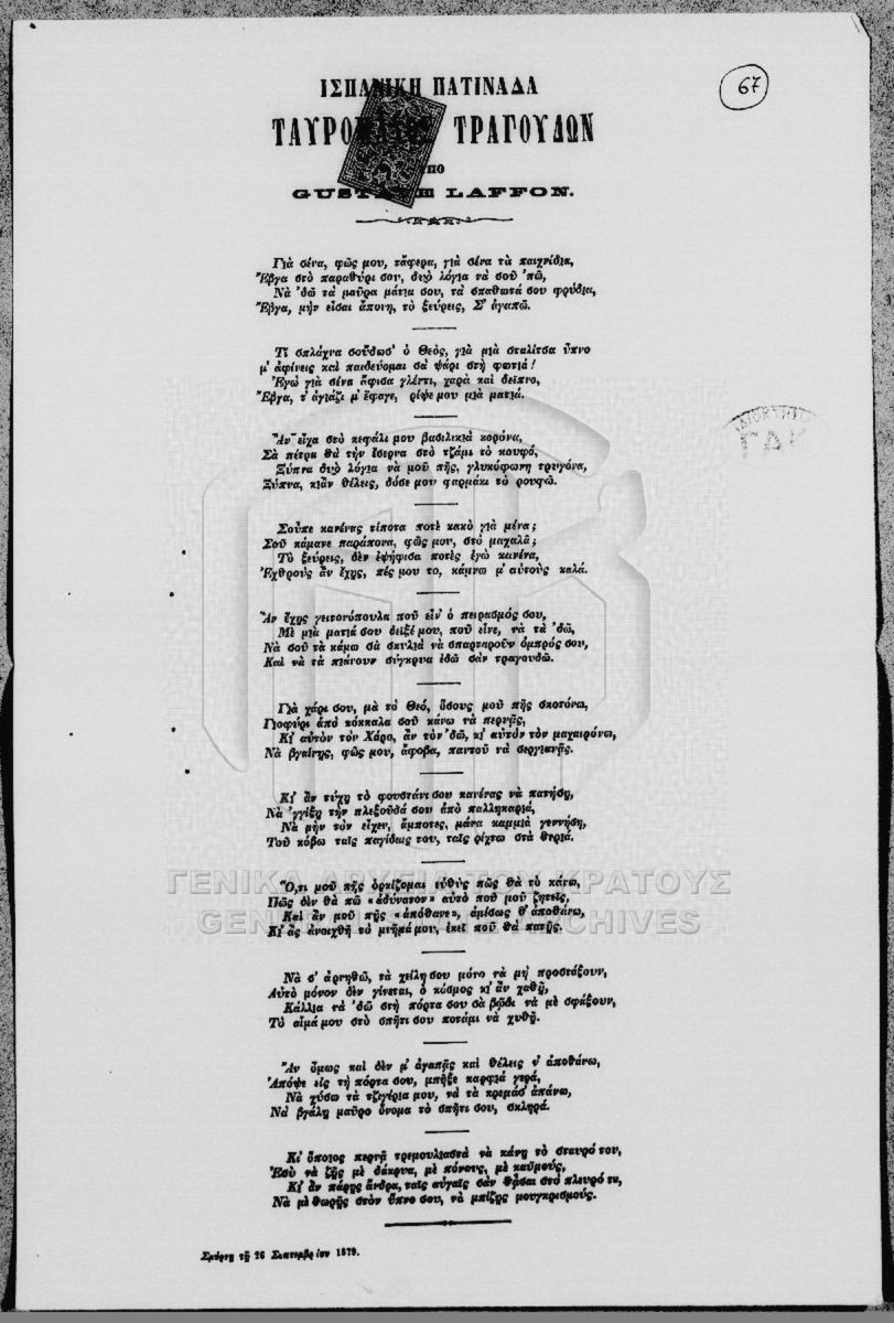 Περιέχει προγράμματα (τελετής δοξολογίας επί τη εορτή του ονόματος του Βασιλέως τη 21 Απριλίου 1865, της τελετής της εθνικής εορτής της 2...