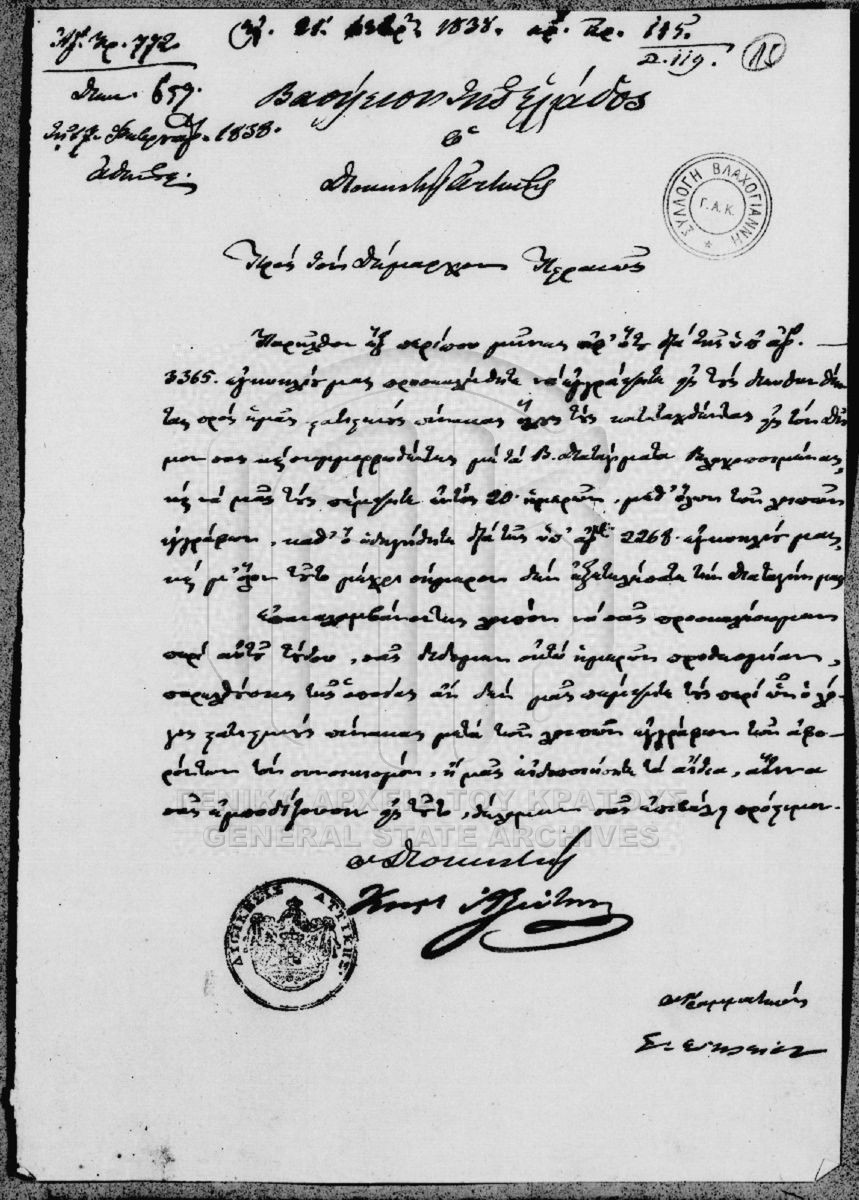 [File] GRGSA-CSA_PCVLA.AA.S01.SS05.F000194 File #194 - "Αθηναϊκά (Δημόσια έγγραφα)" [1834 – 1867] Περιέχει αλληλογραφία της επί των Εσωτερικών Γραμματείας της Επικρατείας, της Διεύθυνσης της Διοικητικής Αστυνομίας Αθηνών και Πειραιώς, ... |