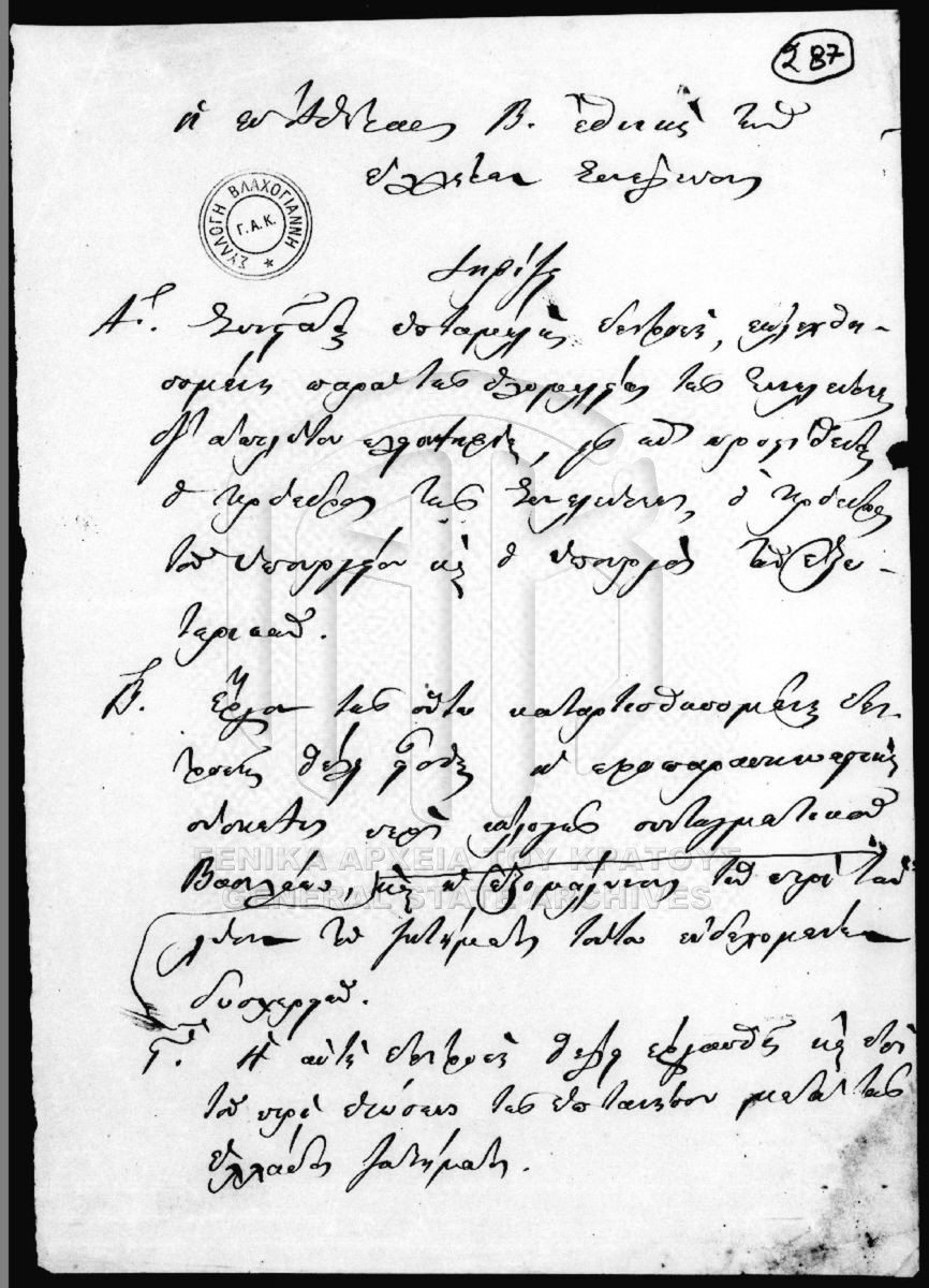 [Fonds] GRGSA-CSA_PCVLA.AA Συλλογή Γιάννη Βλαχογιάννη [1600 - 1950] Η Συλλογή Γιάννη Βλαχογιάννη περιέχει έξι καταλόγους: -Κατάλογος Α' (Αρχείον Αγώνος, Αρχείον Καποδιστριακής περιόδου, Αρχείον περιόδου Όθ... |
