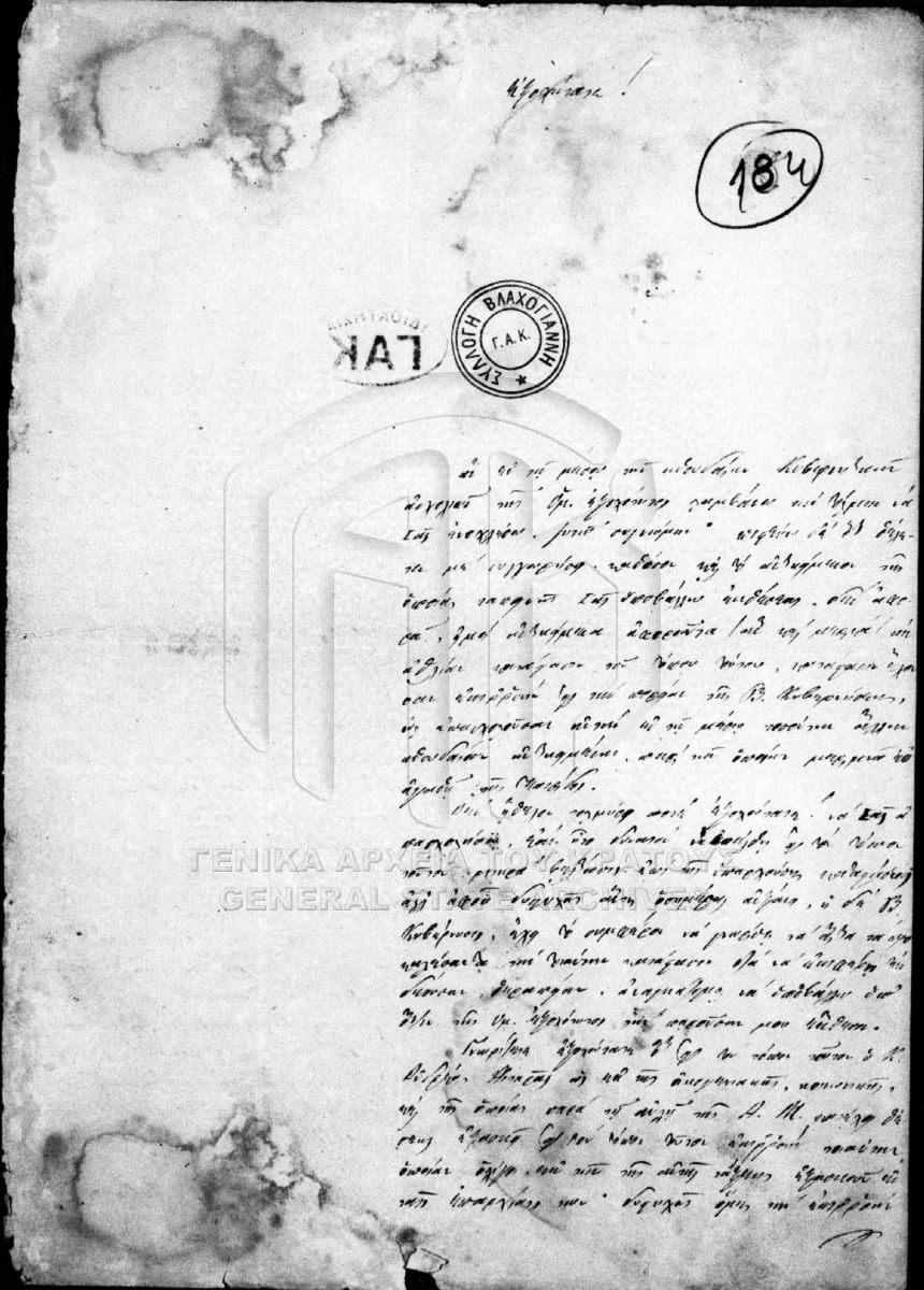 Περιέχει αλληλογραφία του Εκτελεστικού Σώματος και της επί των Στρατιωτικών Γραμματείας της Επικρατείας προς τον Ιωάννη Κολοκοτρώνη και τ...