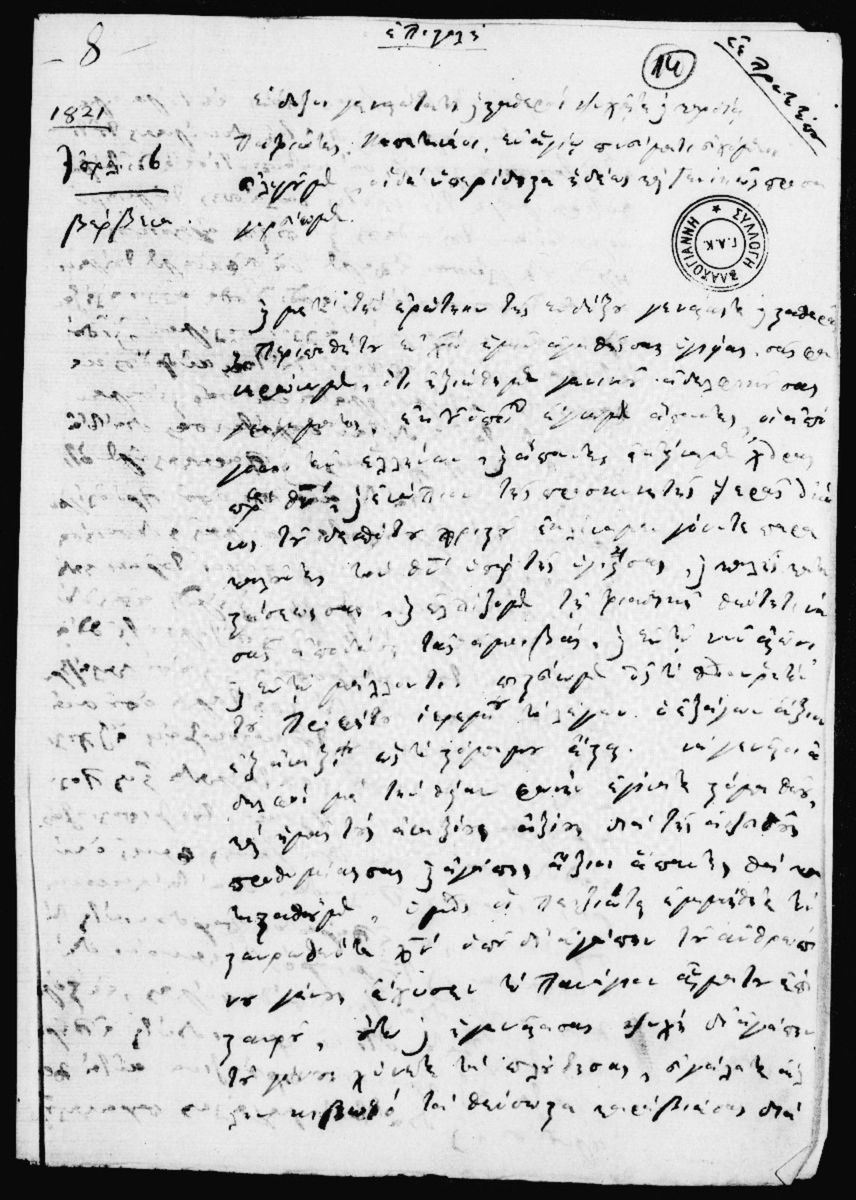 File #250 - "Αρχείο Ρήγα Παλαμήδη, Επαναστατικά"  [1820 – 1821]