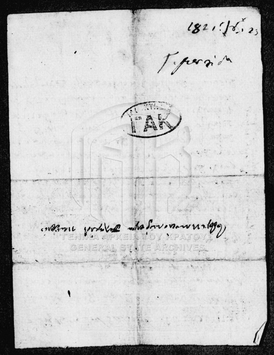 Φάκελος #250 - "Αρχείο Ρήγα Παλαμήδη, Επαναστατικά"  [1820 – 1821]
