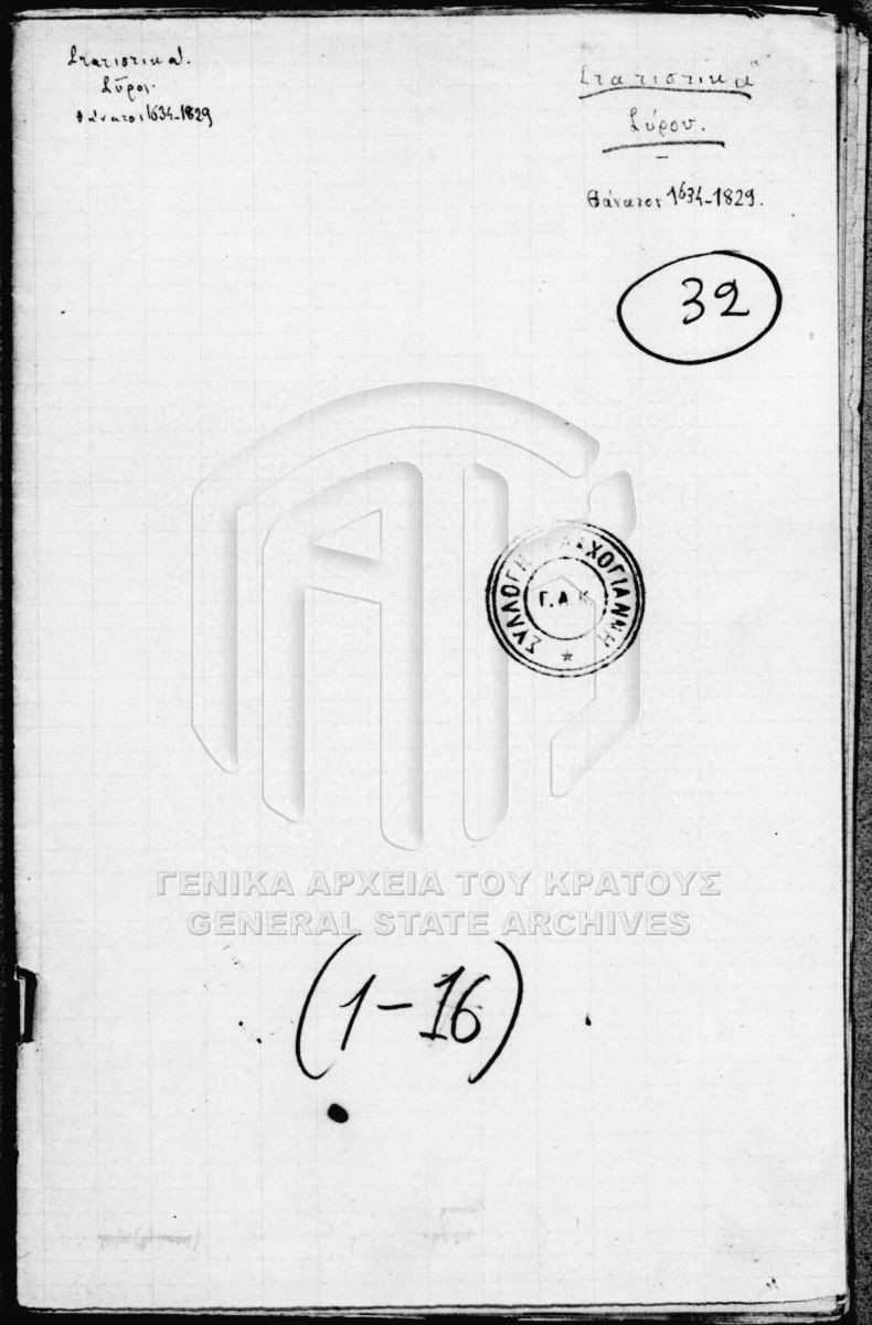 [Fonds] GRGSA-CSA_PCVLA.AA Συλλογή Γιάννη Βλαχογιάννη [1600 - 1950] Η Συλλογή Γιάννη Βλαχογιάννη περιέχει έξι καταλόγους: -Κατάλογος Α' (Αρχείον Αγώνος, Αρχείον Καποδιστριακής περιόδου, Αρχείον περιόδου Όθ... |