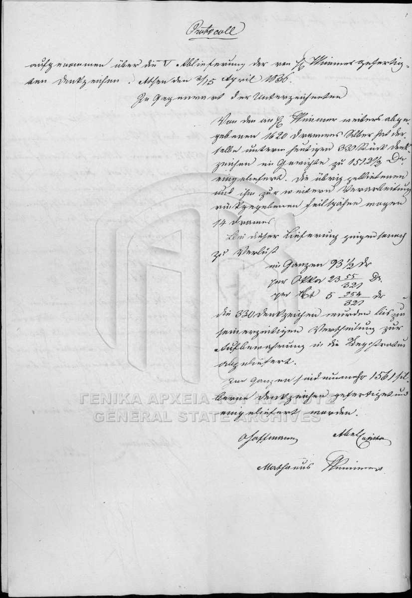 [Item] GRGSA-CSA_PAO007.00.01.F000006.IT000133 Item #133 - Υπηρεσιακή αλληλογραφία [24 Απριλίου/6 Μαϊου 1836] Τρία πρακτικά που αφορούν την κατασκευή των αργυρών σταυρών. Τα πρακτικά αυτά ανήκουν στα έγγραφα που αφορούν την κατασκευή των αργυρών ... |