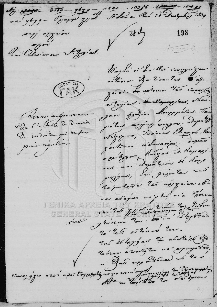 [Τεκμήριο] GRGSA-CSA_PAO007.00.01.F000033.IT000198 Τεκμήριο #198 - Υπηρεσιακή αλληλογραφία [22 Δεκεμβρίου 1839] Επιστολή της Γραμματείας Στρατιωτικών προς τη διοίκηση Αιτωλίας, στην οποία αναφέρει ότι οι δημότες που αναφέρονται και οι οποίοι έκαναν ... |