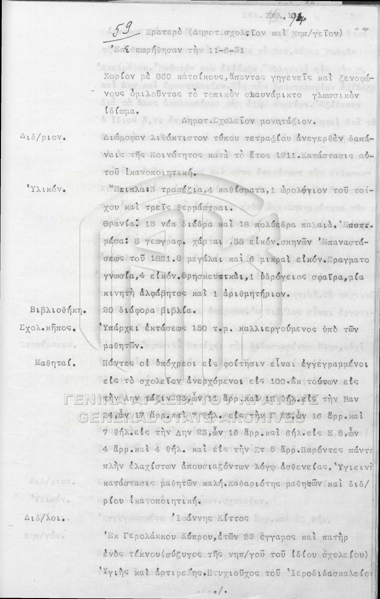 File #034 - PRIMARY EDUCATION DIVISION OF THE PREFECTURE OF FLORINA  [1938 - 1931]