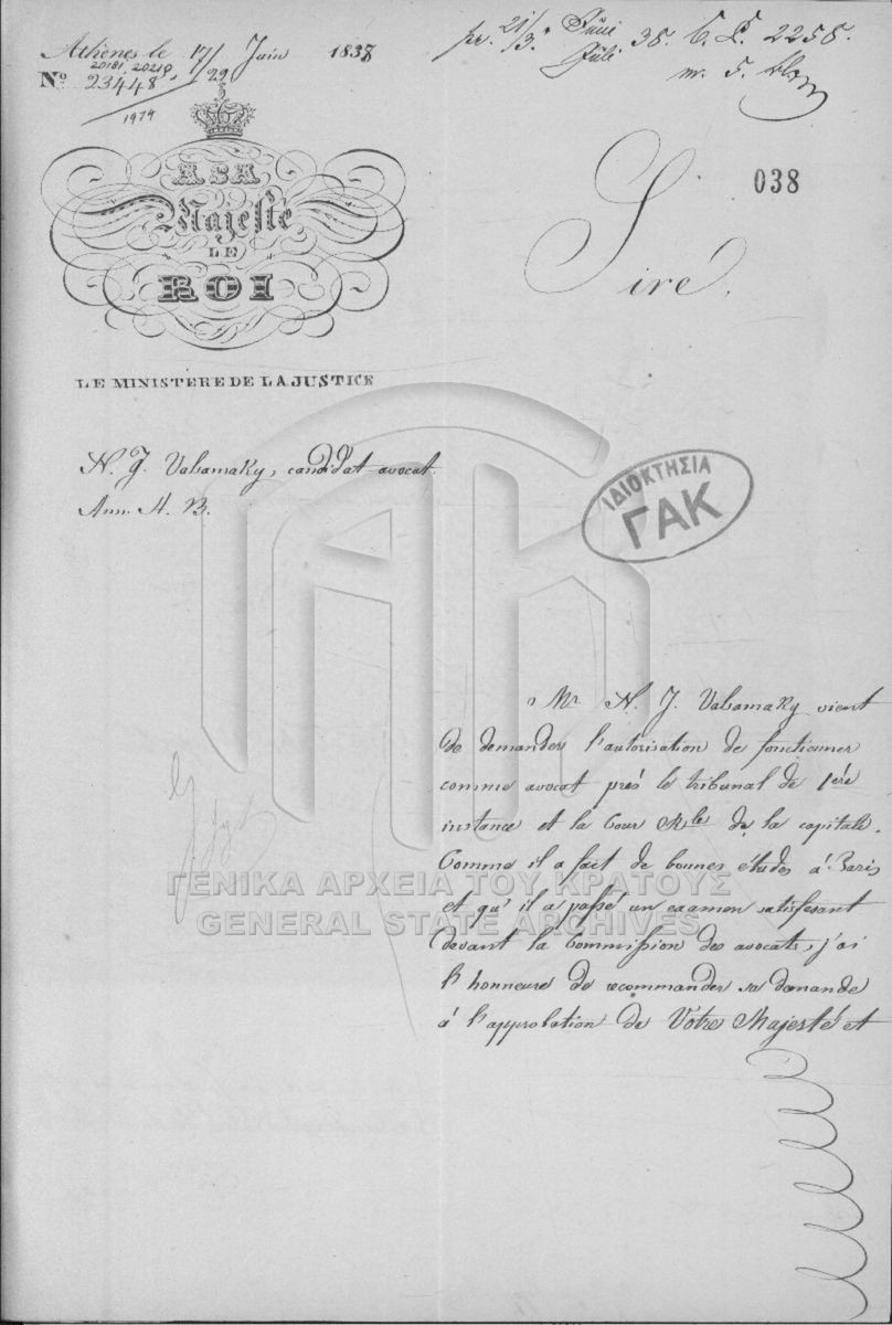 ARCHIVES DU MINISTERE DE LA JUSTICE DE LA PERIODE D'OTHON (1833-1862) - ARCHIVES DU MINISTERE DE LA JUSTICE DE LA PERIODE D'OTHON (1833-1862)  [1833 - 1862]