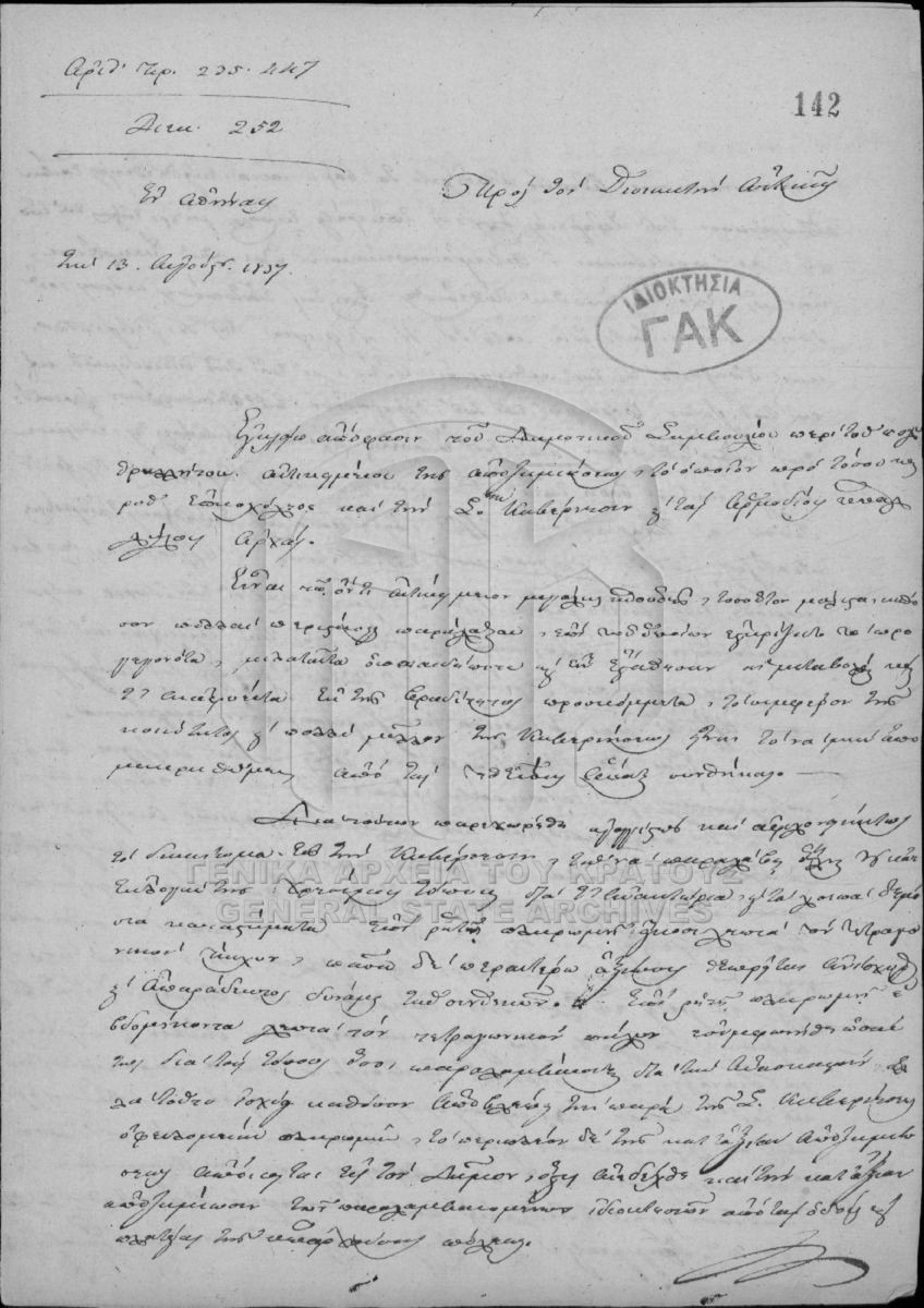 Περιέχει έγγραφα και σχέδια της πόλεως Αθηνών, Πειραιώς, Αττικοβοιωτίας, Εύβοιας, Αιτωλίας και Ακαρνανίας, Φθιωτιδοφωκίδος, Αργολιδοκοριν...