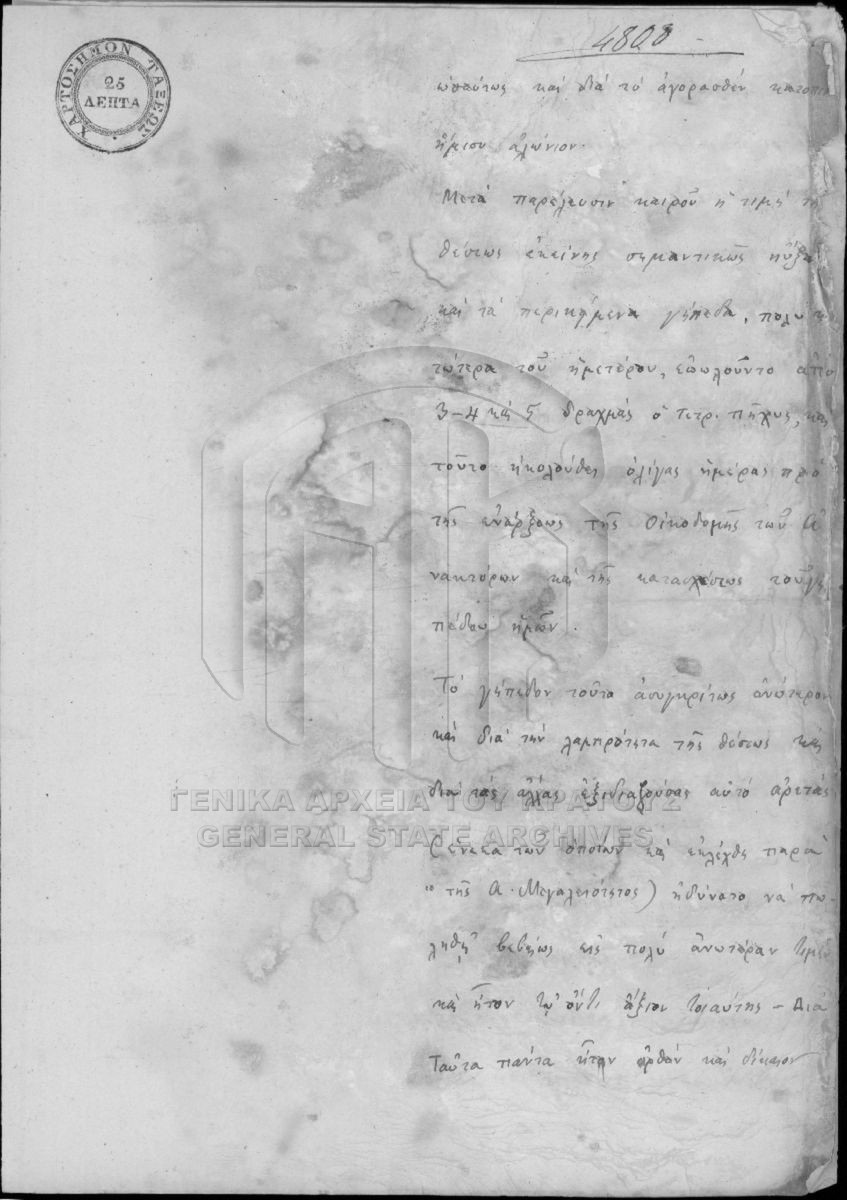 Περιέχει έγγραφα και σχέδια της πόλεως Αθηνών, Πειραιώς, Αττικοβοιωτίας, Εύβοιας, Αιτωλίας και Ακαρνανίας, Φθιωτιδοφωκίδος, Αργολιδοκοριν...