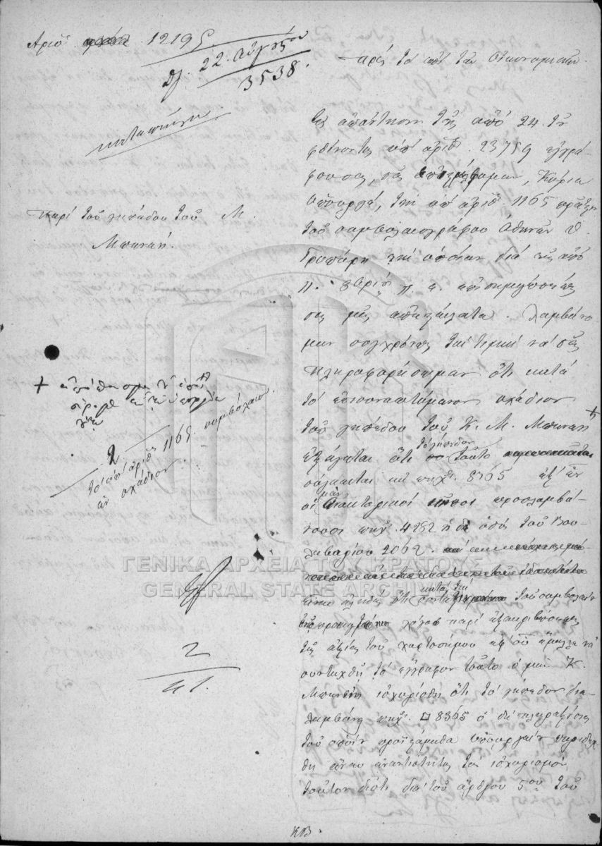 Περιέχει έγγραφα και σχέδια της πόλεως Αθηνών, Πειραιώς, Αττικοβοιωτίας, Εύβοιας, Αιτωλίας και Ακαρνανίας, Φθιωτιδοφωκίδος, Αργολιδοκοριν...
