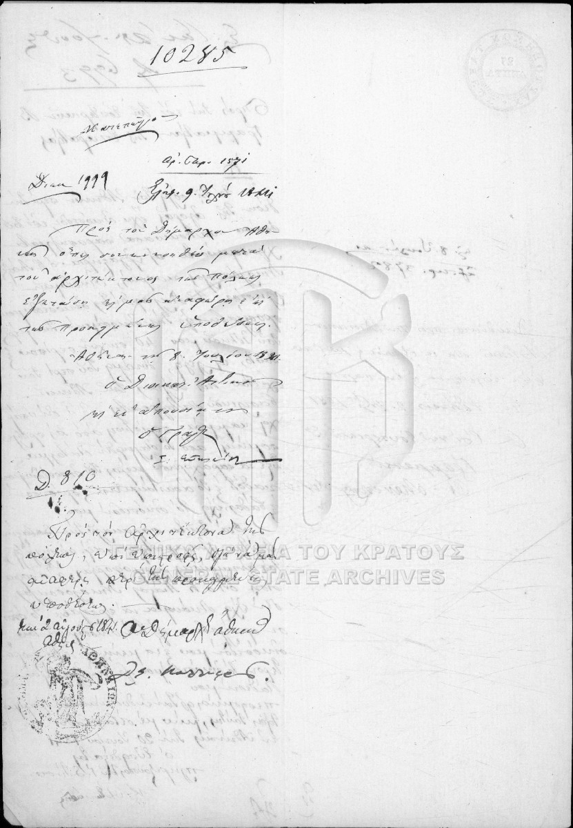 Περιέχει έγγραφα και σχέδια της πόλεως Αθηνών, Πειραιώς, Αττικοβοιωτίας, Εύβοιας, Αιτωλίας και Ακαρνανίας, Φθιωτιδοφωκίδος, Αργολιδοκοριν...