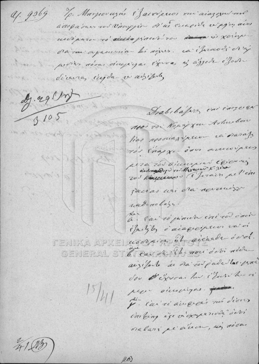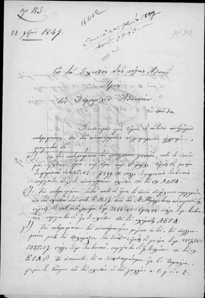 Περιέχει έγγραφα και σχέδια της πόλεως Αθηνών, Πειραιώς, Αττικοβοιωτίας, Εύβοιας, Αιτωλίας και Ακαρνανίας, Φθιωτιδοφωκίδος, Αργολιδοκοριν...