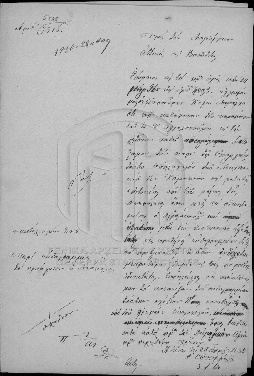 Περιέχει έγγραφα και σχέδια της πόλεως Αθηνών, Πειραιώς, Αττικοβοιωτίας, Εύβοιας, Αιτωλίας και Ακαρνανίας, Φθιωτιδοφωκίδος, Αργολιδοκοριν...