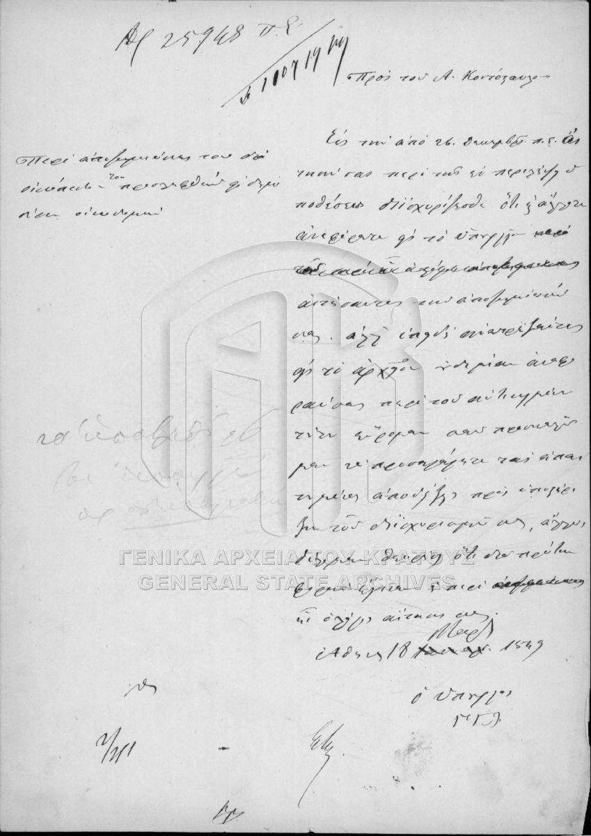 Περιέχει έγγραφα και σχέδια της πόλεως Αθηνών, Πειραιώς, Αττικοβοιωτίας, Εύβοιας, Αιτωλίας και Ακαρνανίας, Φθιωτιδοφωκίδος, Αργολιδοκοριν...