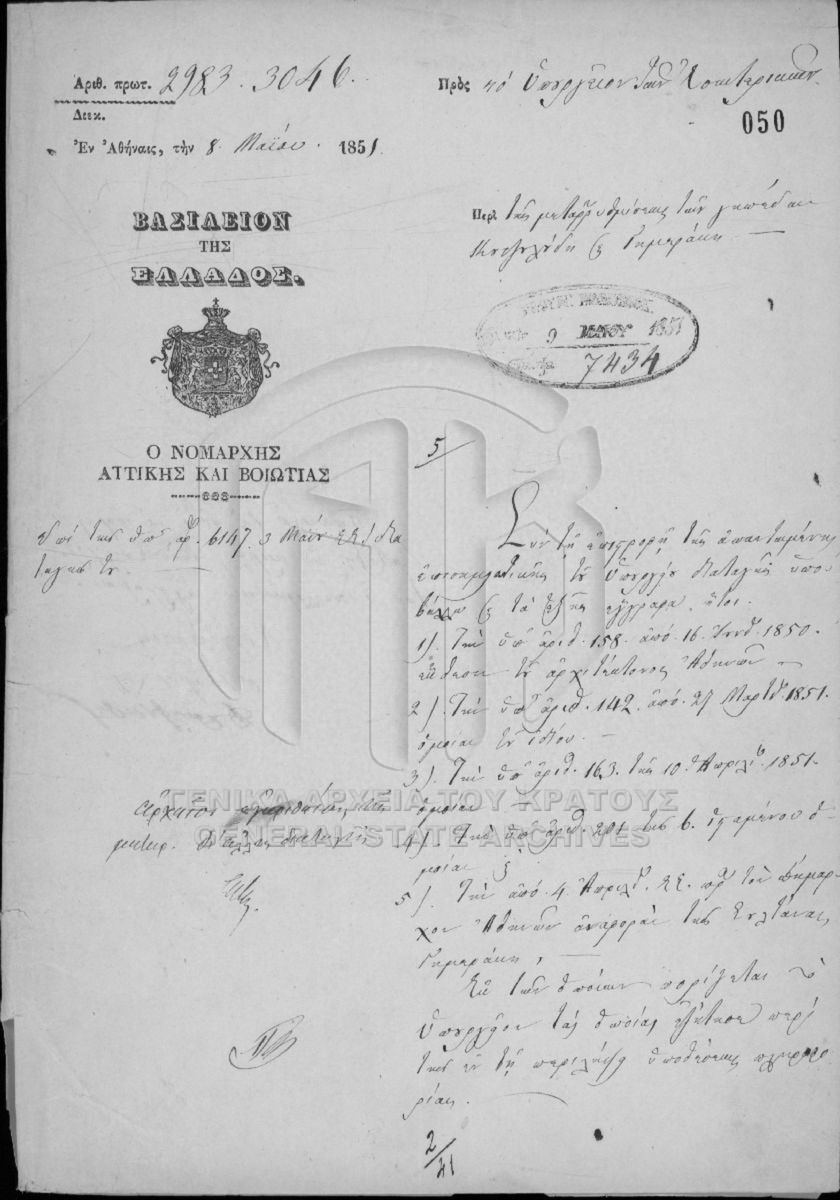 Περιέχει έγγραφα και σχέδια της πόλεως Αθηνών, Πειραιώς, Αττικοβοιωτίας, Εύβοιας, Αιτωλίας και Ακαρνανίας, Φθιωτιδοφωκίδος, Αργολιδοκοριν...