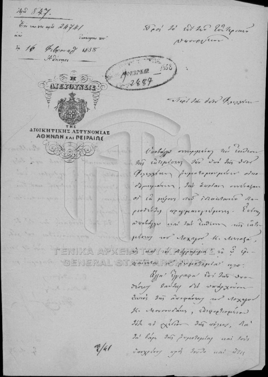Περιέχει έγγραφα και σχέδια της πόλεως Αθηνών, Πειραιώς, Αττικοβοιωτίας, Εύβοιας, Αιτωλίας και Ακαρνανίας, Φθιωτιδοφωκίδος, Αργολιδοκοριν...