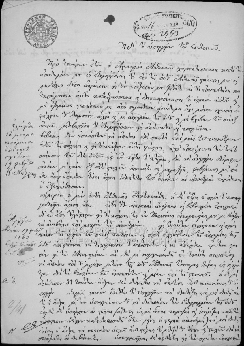 File #008 - URBAN PLANNING ARCHIVE (1833-1879).  [Ιανουάριος - Μάρτιος 1860]