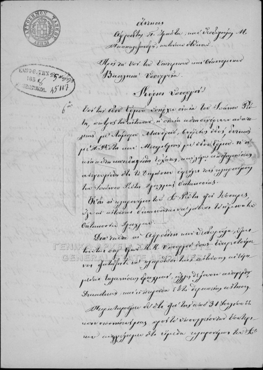 Περιέχει έγγραφα και σχέδια της πόλεως Αθηνών, Πειραιώς, Αττικοβοιωτίας, Εύβοιας, Αιτωλίας και Ακαρνανίας, Φθιωτιδοφωκίδος, Αργολιδοκοριν...