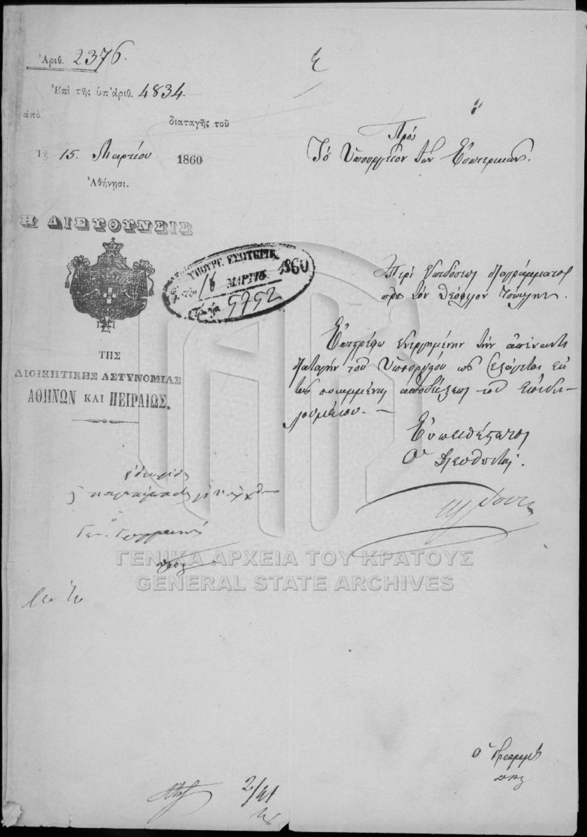 File #008 - URBAN PLANNING ARCHIVE (1833-1879).  [Ιανουάριος - Μάρτιος 1860]