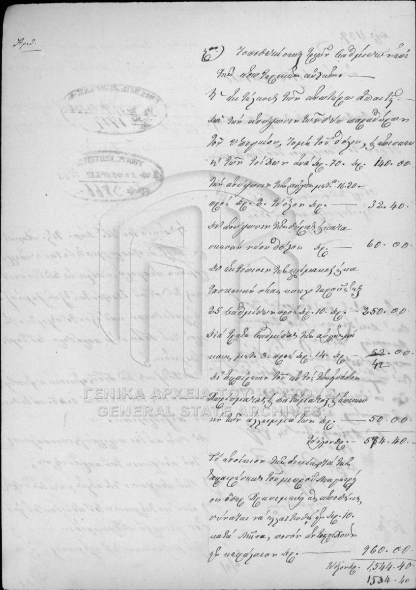 Περιέχει έγγραφα και σχέδια της πόλεως Αθηνών, Πειραιώς, Αττικοβοιωτίας, Εύβοιας, Αιτωλίας και Ακαρνανίας, Φθιωτιδοφωκίδος, Αργολιδοκοριν...